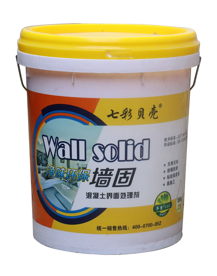 墻固即聚合物混凝土界面處理劑,外觀為乳白色膠液。具有滲透性,能充分浸潤墻面基層,使基層密實(shí),提高光滑基層界面附著力,粘結(jié)強(qiáng)度高,保證水泥拉毛牢固可靠,提高膩?zhàn)踊蚧覞{與墻面基層的粘結(jié)強(qiáng)度,有效防止找平層空鼓、開裂,提高施工質(zhì)量,加快施工進(jìn)度,是裝飾裝修工程中不可缺少的配套材料。適用于混凝土、加氣混凝土和磚混墻面批刮膩?zhàn)踊蚰ɑ仪盎鶎拥慕缑嫣幚恚m用于在墻面基層進(jìn)行人工“造毛”,即造水泥拉毛。